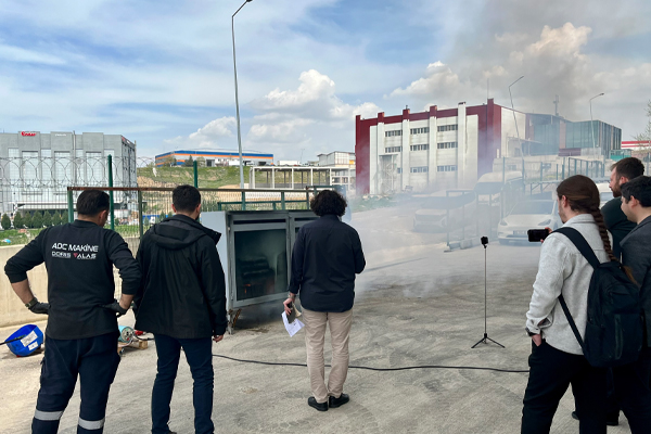 Ziyaretin en dikkat çekici bölümlerinden biri ise gerçekleştirilen yangın testleri oldu. ADC Makine mühendislik ekibi tarafından yapılan uygulamalı testlerde, araç motor bölmesinde oluşabilecek yangın senaryolarına karşı geliştirilen aerosol yangın söndürme sistemlerinin müdahale ve söndürme performansı demonstrasyonlarla gösterildi. Gerçekleştirilen testler, araç yangınlarına karşı hızlı ve otomatik müdahalenin önemini bir kez daha ortaya koydu.